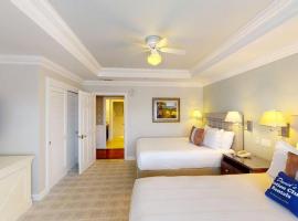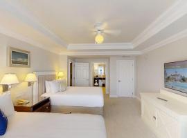 King size bed in the master bedroom. Full kitchen. 2 full baths and in suite laundry. Living room with a queen size pull-down wall bed, and pull-down bunk size bed. Second bedroom with either; a. queen bed, a queen size sleeper sofa and a pull-down bunk size bed or b. 2 queen beds. **If you have a preference for one layout over the other, the specification must be made at the time of submitting your request form; the reservation can not be changed at a later date.**