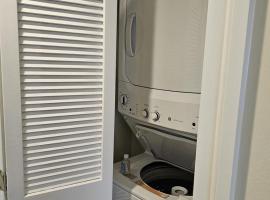 King size bed in the master bedroom. Full kitchen. Full bath and in suite laundry. Living room with queen size pull-down wall bed.