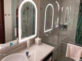 King size bed in the primary bedroom. Full kitchen. 3 Full baths and in suite laundry. Living room with queen size pull-down bed and pull-down bunk size bed. Second bedroom with either; a. queen bed and queen size pull-down or b. 2 queen beds. **If you have a preference for one layout over the other, specification must be made at the time of submitting your request form; the reservation can not be changed at a later date.**