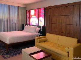 The newest addition to the Disney Vacation Club located in Anaheim, California, The Villas at Disneyland Hotel celebrates the iconic legacy of Disney storytelling and blends it with contemporary, modern design. With unique works from Disney artists, colorful fabrics and extraordinary attention to detail, the magic of Disney shines through and immerses you in beloved stories in a wonderful new way!