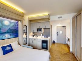 A modern and vibrant oasis across the Seven Seas Lagoon from Magic Kingdom, Disney’s Polynesian - Island Tower brings the captivating stories and bold spirit of the islands to life. Discover the art of wayfinding through the murals and gardens that pay homage to the culture and history of Polynesia with a classic Disney flair. Villas range from intimate Duo Studios to 2-Bedroom Penthouses, making the Island Tower a perfect starting point for all of your Disney adventures.