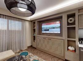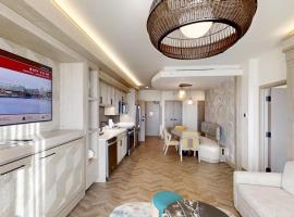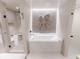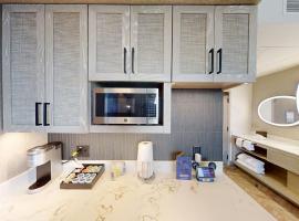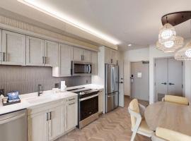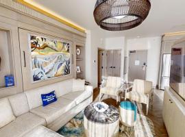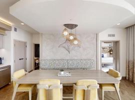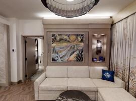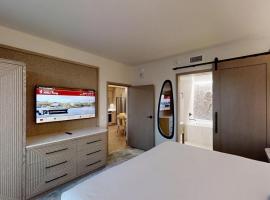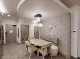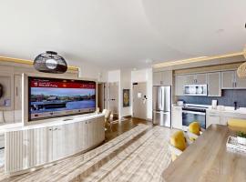 King size bed in the master bedroom. Full kitchen. 3 full baths and in suite laundry. Living room with 1 queen-size pull-down bed, and 1 pull-down bunk-size bed. Second bedroom with either; a. queen bed, and 1 queen-size pull-down bed or b. 2 queen beds. **If you have a preference for one layout over the other, the specification must be made at the time of submitting your request form; the reservation can not be changed at a later date.**