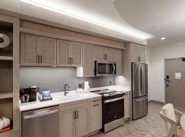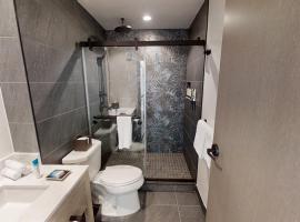 1 queen-size pull down bed, 1 full bath, and a kitchenette.
