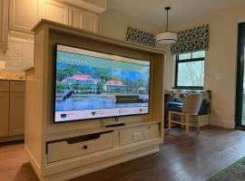 King size bed in the master bedroom. Full kitchen. Full bath and in suite laundry. Living room with queen size sleeper sofa and sleeper chair.