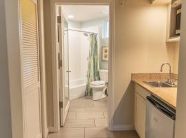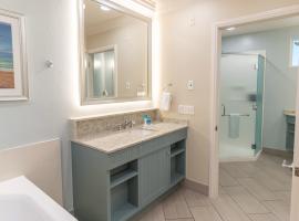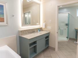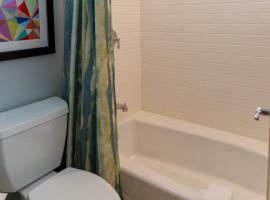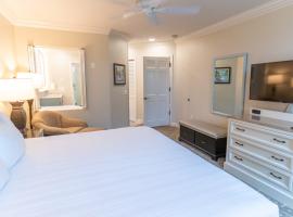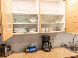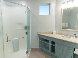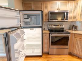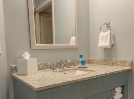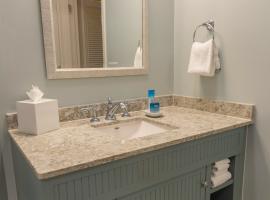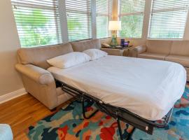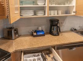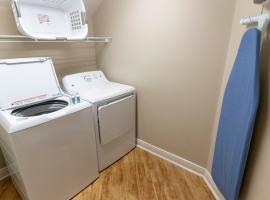 King size bed in the master bedroom. Full kitchen. Full bath and in suite laundry. Living room with queen size sleeper sofa and sleeper chair.