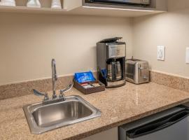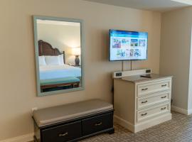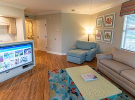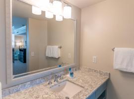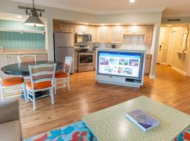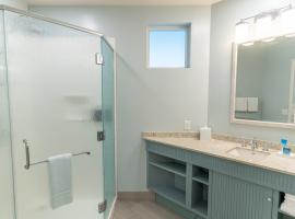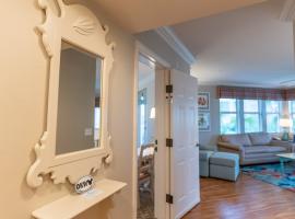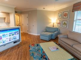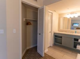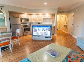 King size bed in the master bedroom. Full kitchen. 2 full baths and in suite laundry. Living room with queen size sleeper sofa and sleeper chair. Second bedroom with 2 queen beds.
