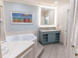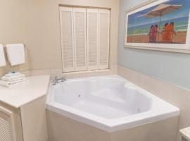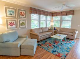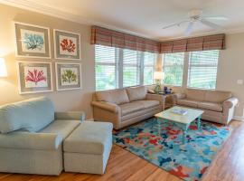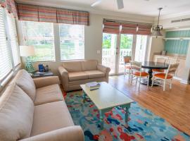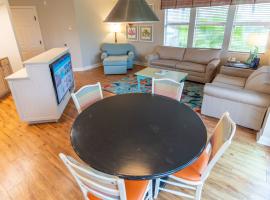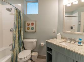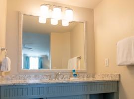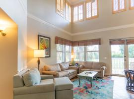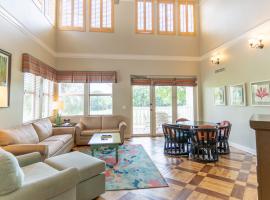 King size bed in the master bedroom. Full kitchen. 1 queen size sleeper sofa. 4 full baths and in suite laundry. Two additional bedrooms, one containing 2 queen beds and the other containing 2 double beds.