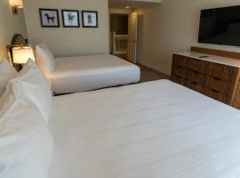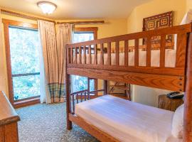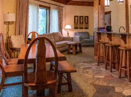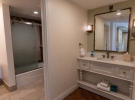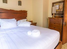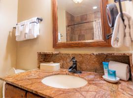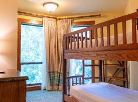 King size bed in the master bedroom. Full kitchen. 2 full baths and in suite laundry. Living room with 1 queen-size pull-down bed, and 1 pull-down bunk-size bed. Second bedroom with either; a. queen bed, and 1 double-size pull-down bed or b. 2 queen beds. **If you have a preference for one layout over the other, the specification must be made at the time of submitting your request form; the reservation can not be changed at a later date.**