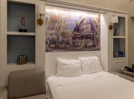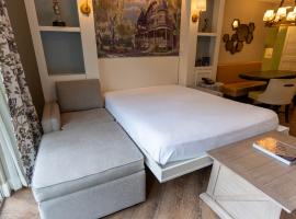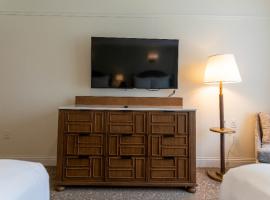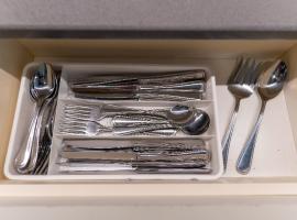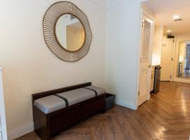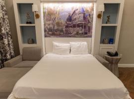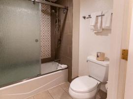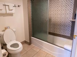 1 queen-size bed and 1 double-size pull-down bed. Full bath.