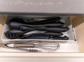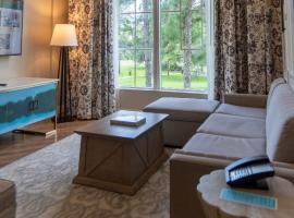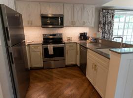 Queen size bed in the master bedroom. Full kitchen. 2 full baths and in suite laundry. Living room with queen size sleeper sofa and sleeper chair. Two additional bedrooms, one containing a queen bed and the other containing bunk beds.