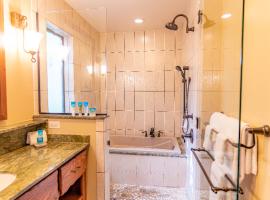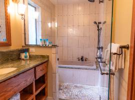 King size bed in the master bedroom. Full kitchen. 4 full baths and in suite laundry. 1 queen-size pull-down bed. Two additional bedrooms each containing 2 queen beds.